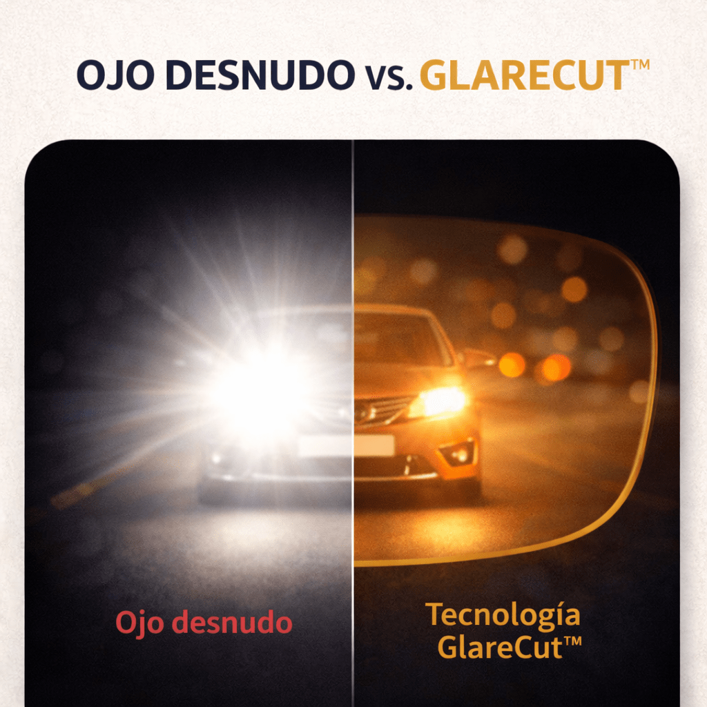 Las gafas para faros tienen lentes naranjas, que reducen por completo el resplandor de los faros que vienen en sentido contrario, gracias a la tecnología "GlareCut".
