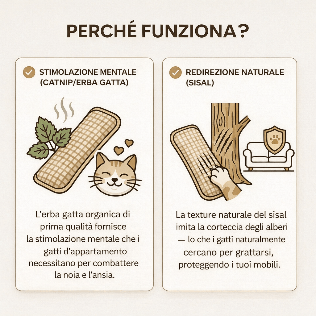 La consistenza naturale del sisal imita la corteccia degli alberi, che i gatti cercano naturalmente di graffiare, proteggendo così i tuoi mobili