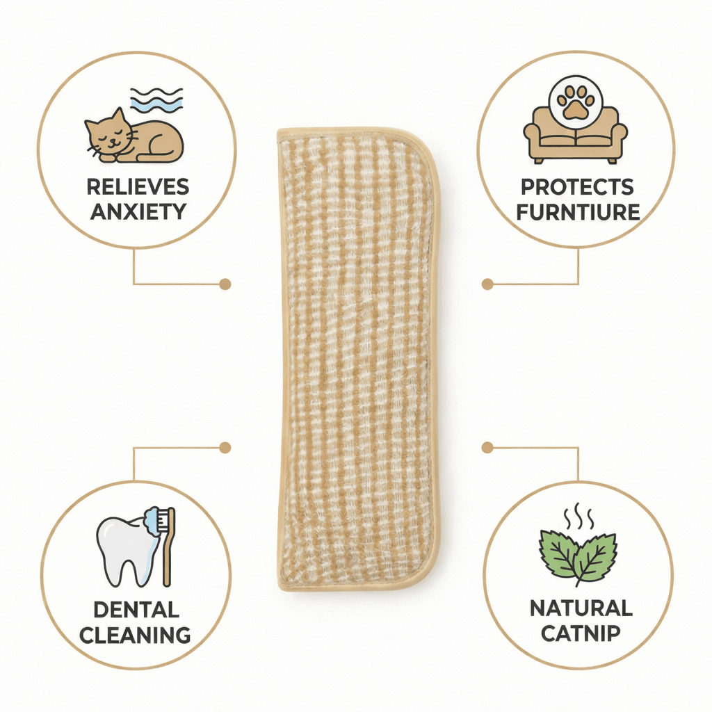 A textura natural do sisal imita a casca das árvores – aquilo que os gatos naturalmente procuram arranhar – protegendo assim os seus móveis.